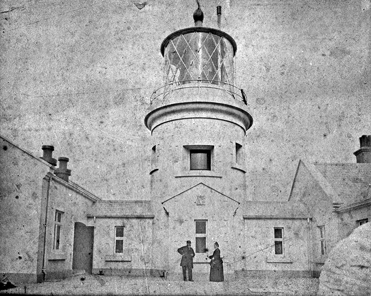 As a wonderful comparison with the model, the photo below shows George with his wife Catherine standing at the entrance to the lighthouse, probably sometime soon after his appointment there in 1879.
