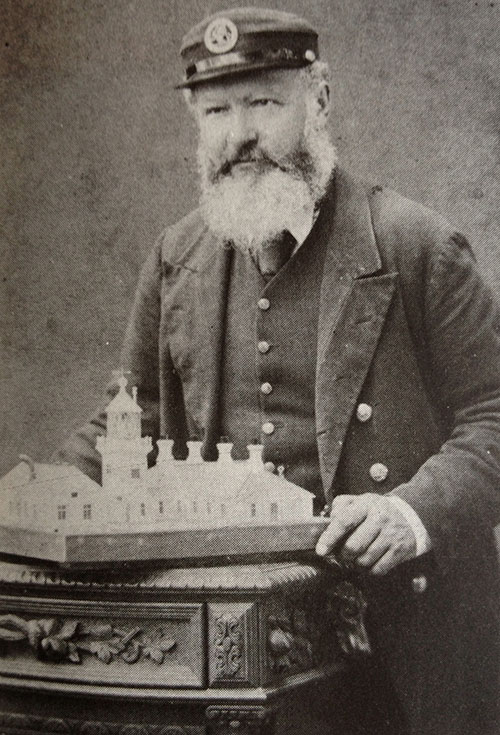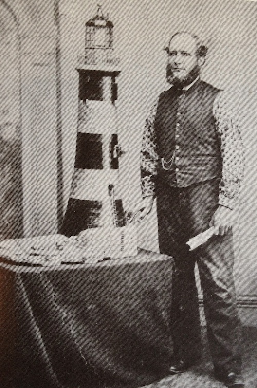 The image below shows George Knott with his model of Smeaton's tower in which he served from 1861 to 1865. The model was kept in the family for many years, owned by his grandson Fred Knott of Braunton (later Barnstaple) Devon. After a short hiatus on his death, the model was finally acquired by the National Maritime Museum which kept it in store for a number of years. After significant lobbying from pharologist Ken Trethewey, the model was found a home in the Maritime Museum at Chatham.