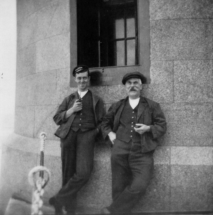 Keepers on the Plymouth Breakwater lighthouse. Photo unmarked and undated.