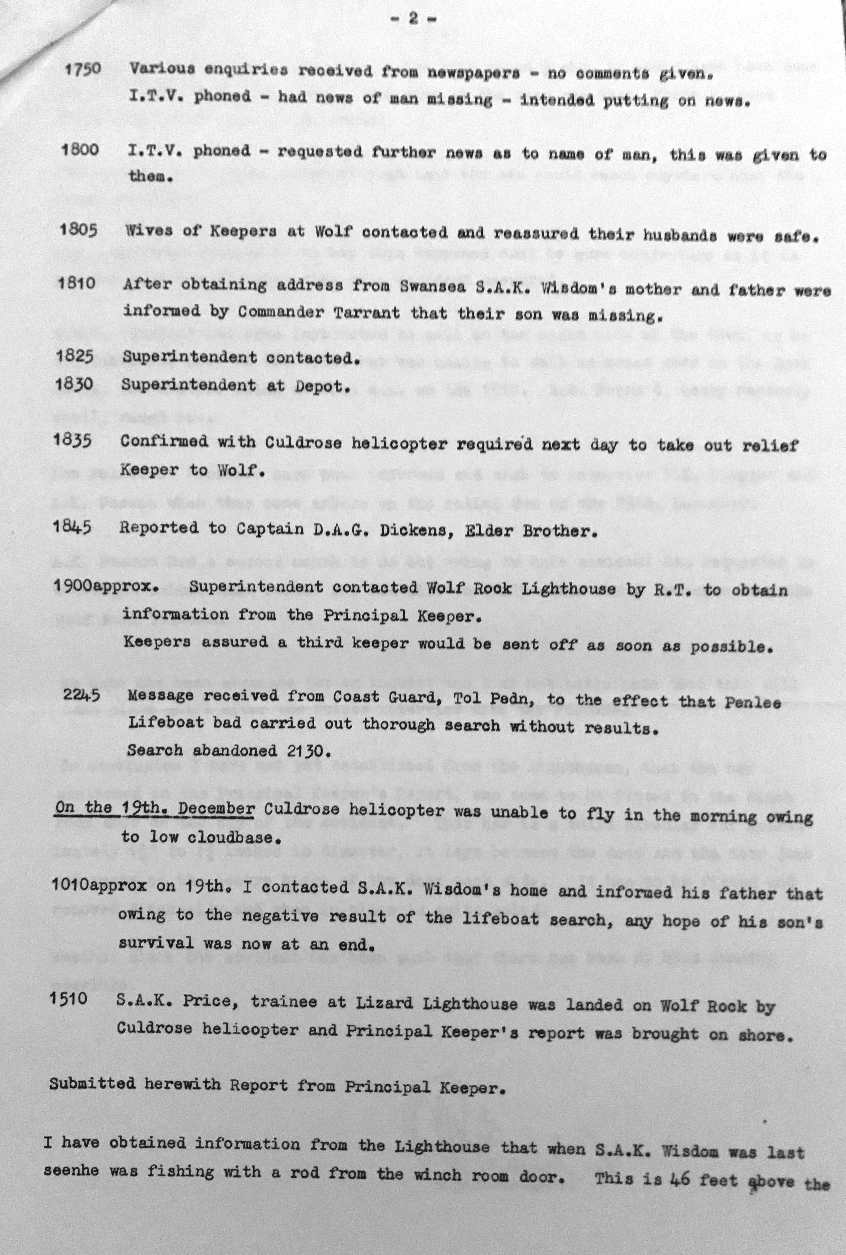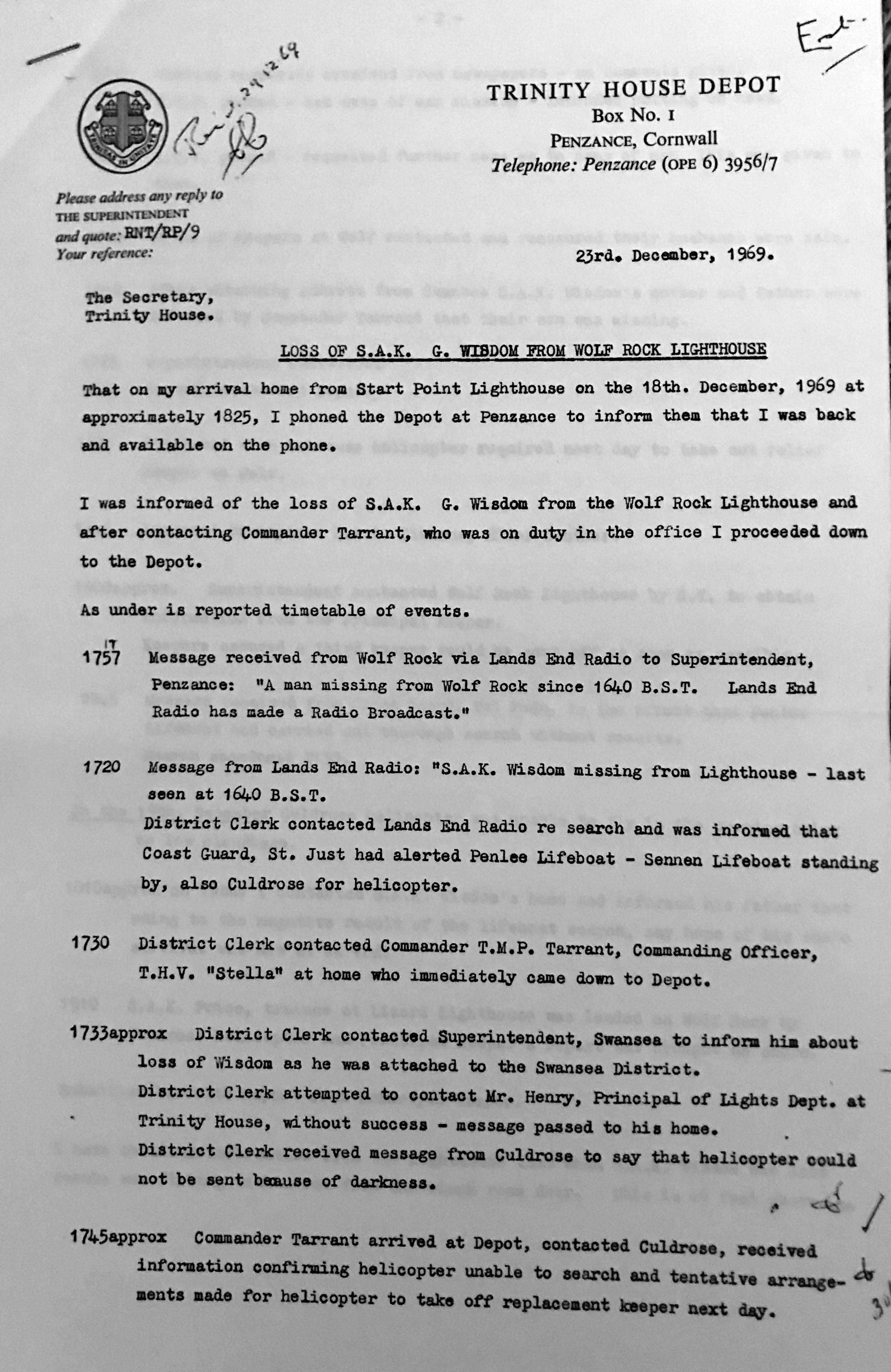 The Loss of SAK G Wisdom from the Wolf Rock lighthouse 18 Dec 1969